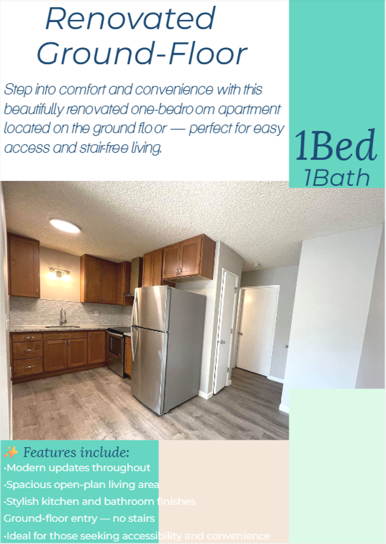 This cozy one-bedroom apartment is located on the ground floor